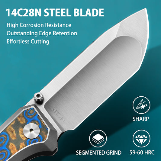 LOTHAR BOUNCER 2.48" 14C28N Steel Tactical Folding Pocket Knife with Micarta Handle,Reversible Pocket Clip